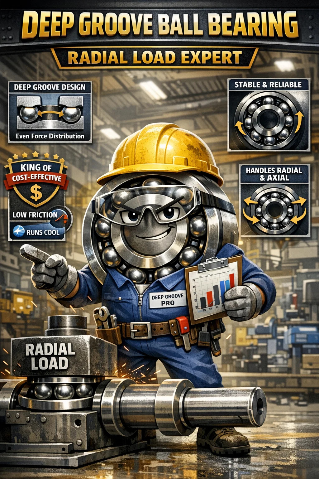 Cuscinetti a sfere a gola profonda sono progettati principalmente e più adatti per gestire carichi radiali (ovvero forze perpendicolari all'albero, come la forza di un oggetto pesante che preme sull'albero).