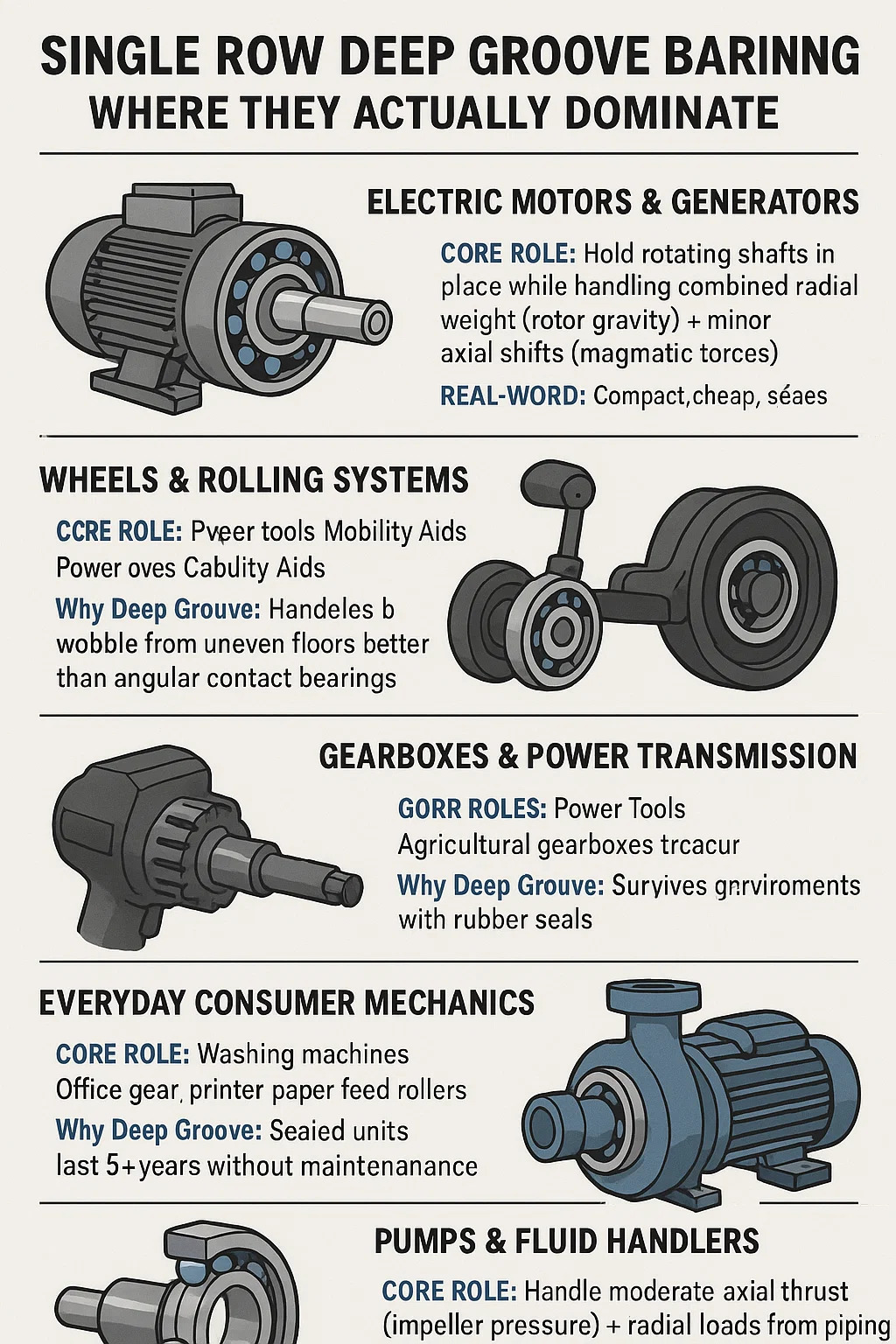Cuscinetti a sfere a gola profonda a corona singola : Dove effettivamente dominano