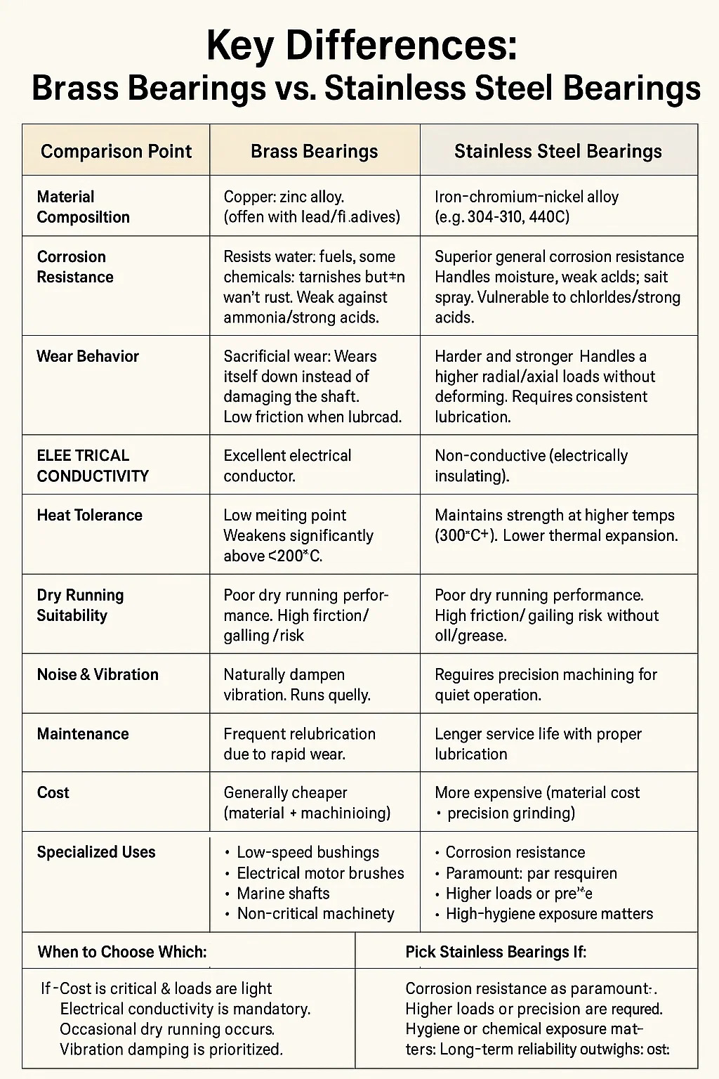 Ecco un confronto dettagliato tra cuscinetti in ottone e cuscinetti in acciaio inossidabile :