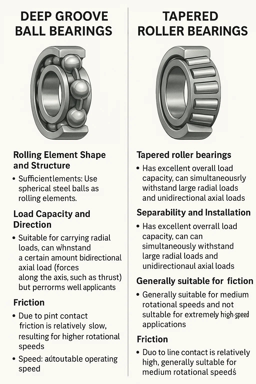 Confronto tra tipi di cuscinetti: cuscinetti a sfere con gola profonda e cuscinetti a rulli conici